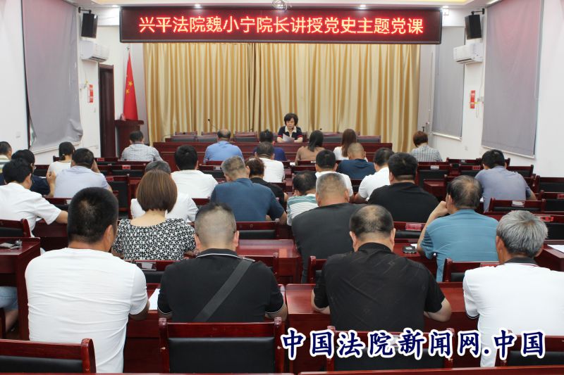 法院讯(李军委)为隆重庆祝建党100周年,贯彻落实市级领导“八个一”活动,6月23日下午,兴平法院院长魏小宁深入阜寨镇,向全体党员讲授党史主题党课。