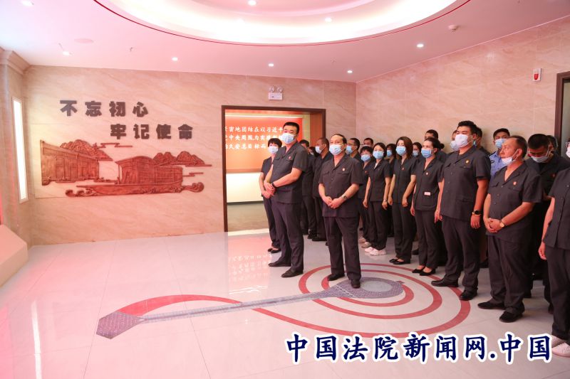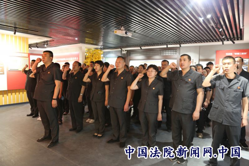 参观结束后,在鲜红的党旗面前,党组书记强新鹏同志带领全体党员干警郑重地举起右手,重温了入党誓词。“我志愿加入中国共产党,拥护党的纲领,遵守党的章程,履行党员义务……”洪亮的宣誓声在大厅久久回荡,泌入人心。