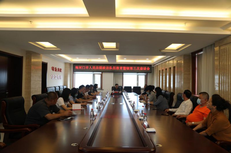 法院讯(陈晰)政法队伍教育整顿开展以来,梅河口市人民法院各环节均已取得不错成效,为向人民群众公布教育整顿工作进展情况,广泛听取社会各界意见建议,扎实推进队伍教育整顿走深走实,6月28日上午,梅河口市人民法院邀请市人大代表、市政协委员、企业家代表、律师代表参加政法队伍教育整顿第三次座谈会。