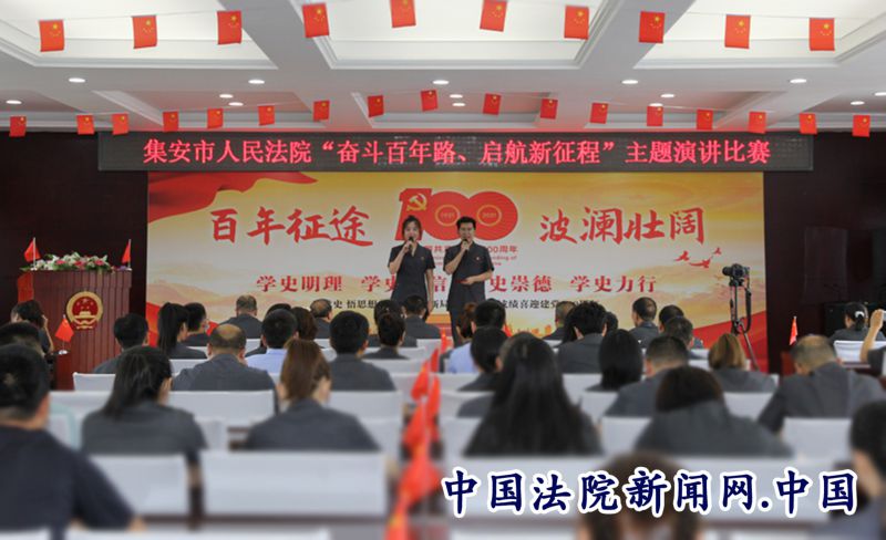 法院讯(于国兴)百年征程波澜壮阔,百年初心历久弥坚。为庆祝中国共产党成立100周年,扎实推进党史学习教育深入开展,巩固政法队伍教育整顿成果,充分展示法院干警新形象新风貌,6月28日上午,集安市人民法院组织开展了“奋斗百年路、启航新征程”主题演讲比赛。