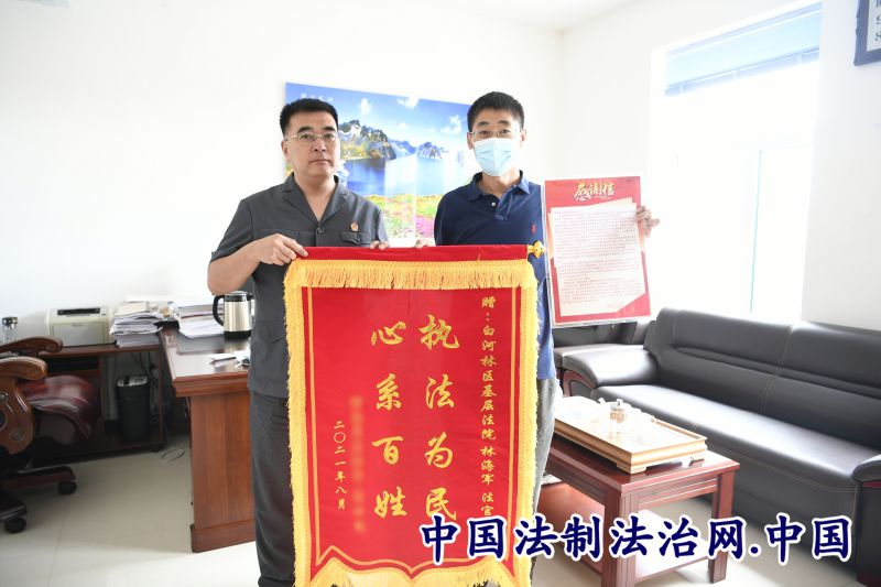 白河林区基层法院始终坚持为群众办实事、解难题,坚持以人民为中心,维护人民的权益,造福人民,始终积极回应人民群众新要求新期待,不断增强人民群众获得感、幸福感、安全感,用法治保障人民安居乐业。群众的认可就是对法院工作的最大支持,白河林区基层法院会将这面锦旗、这封感谢信化作对自身工作的鼓励与鞭策,继续坚守初心,为人民服务。