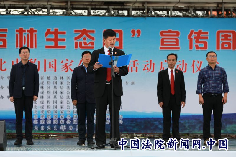 法院讯(李艳华 刘立威)9月22日上午,由吉林省延边林区中级人民法院、东北虎豹国家公园建设延边州工作专班联合举办的首届“吉林生态日”宣传周——走进东北虎豹国家公园活动启动仪式,在珲春市世纪广场隆重举行。启动仪式由延边林区中级法院副院长庄建生主持,延边林区中级法院常务副院长仲伟祥、东北虎豹国家公园建设延边州工作专班副主任夏友照出席启动仪式并致辞。延边林区两级法院和各市县东北虎豹国家公园管理局的相关负责同志及工作人员共计200余人参加了启动仪式,现场旁听群众多达500余人。