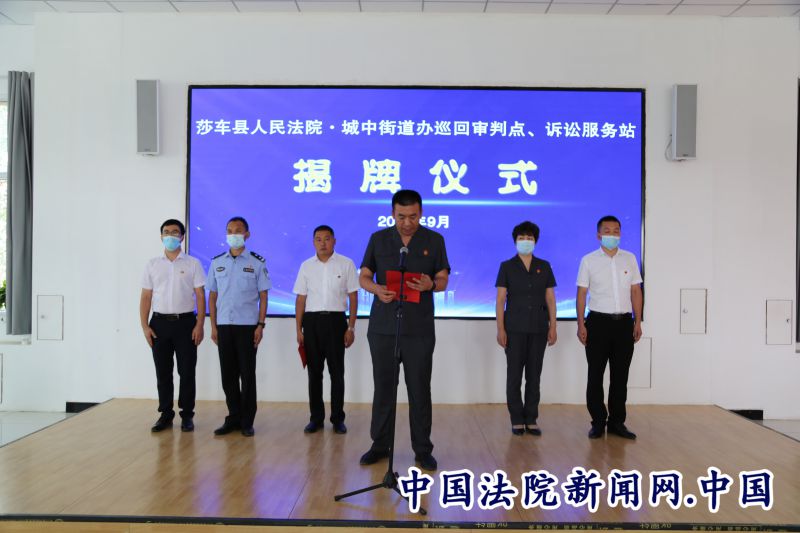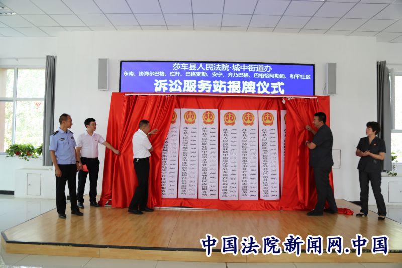 法院讯(姜小东)9月27日,莎车县人民法院诉源治理签约城中街道办暨东南、协海尔巴格、栏杆、巴格麦勒、安宁、其乃巴格、巴格恰阿勒迪、和平社区诉讼服务站揭牌仪式在城中街道办举行。该院党组书记、副院长强新鹏与城中街道办党工委书记蔡英杰共同为城中街道办巡回审判点、诉讼服务站进行了揭牌,城中街道办辖区派出所、司法所、社区相关负责人和群众代表以及法院干警代表40余人参加了揭牌仪式。