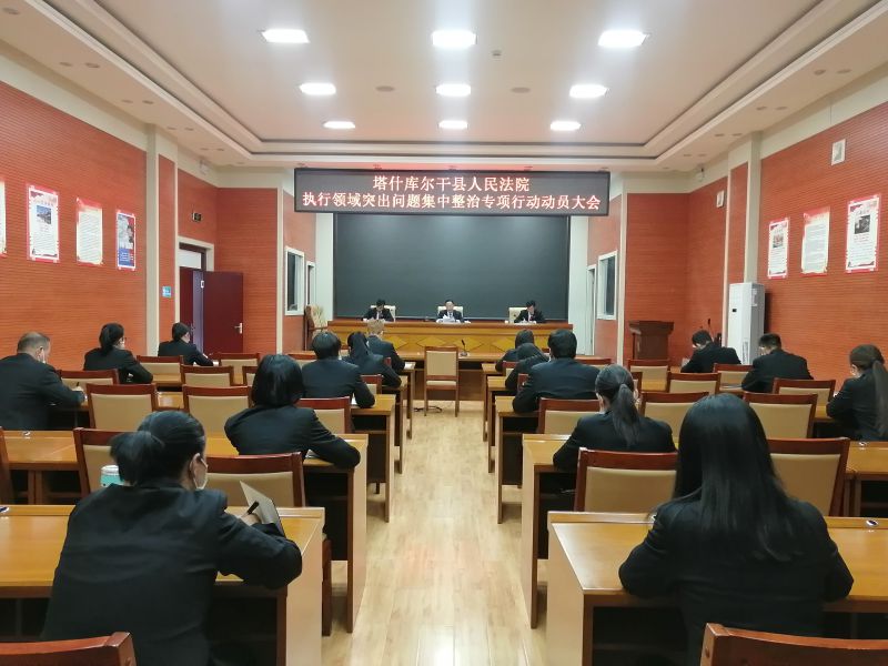 会议上党组成员、副院长王世龙同志宣读了《塔什库尔干县人民法院开展执行领域突出问题集中整治专项行动的实施细则》,从目标任务、整治范围及对象、领导小组、集中整治的突出问题、工作要求等五个方面对该院开展执行领域突出问题集中整治专项行动进行了安排部署。