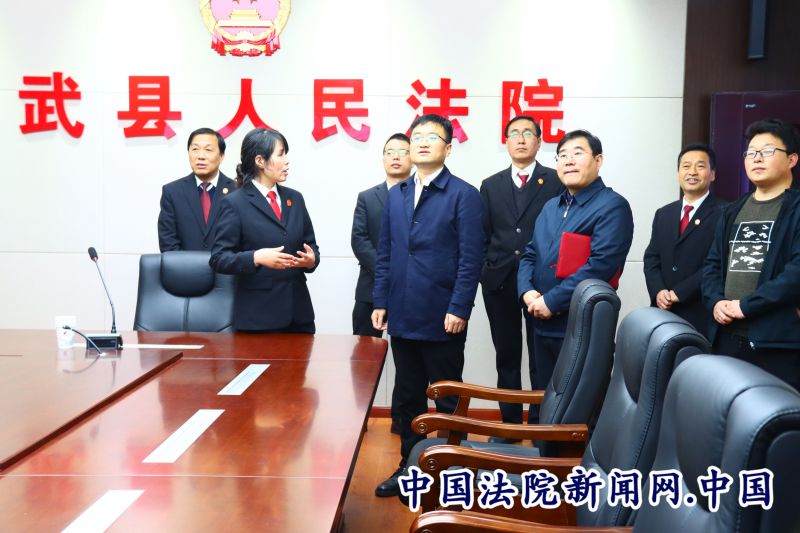 崔剑雄一行查看了长武县社会治理综合服务中心、长武县矛盾纠纷联合调处中心、长武县诉调对接中心、长武法院一站式诉讼服务中心、科技法庭等场所,详细了解立案服务、审判执行、诉源治理、智慧法院建设等工作情况。