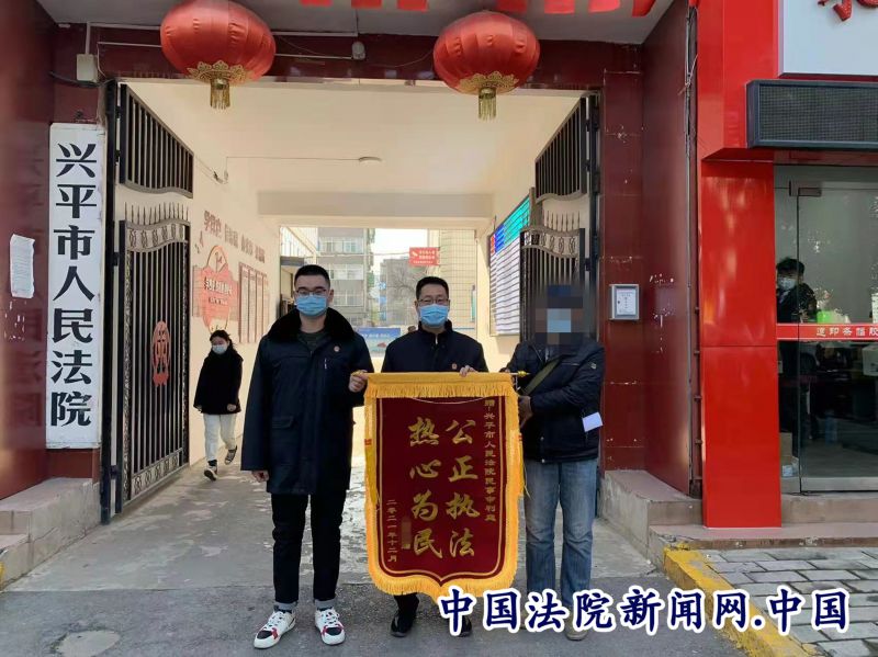 法院讯(李军委)12月13日上午,一起机动车交通事故责任纠纷案当事人杨某某来到兴平市人民法院,向民事审判庭庭长田文峰、执行局史伟法官送来“公正执法 热心为民”“秉公执法 利益群众”的锦旗,感谢法官公正判决、高效执行。