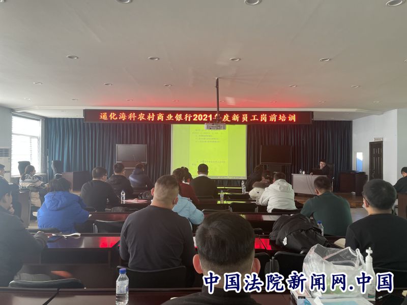 法院讯(孙媛鑫)为进一步增强银行防范风险能力,服务保障金融稳定,优化营商环境。12月21日,通化县人民法院快大茂法庭副庭长赵东方在通化县农村海科商业银行的邀请下,为该行新入职员工送去了一堂法律知识专题培训讲座,助力金融机构防范风险。通化县农村海科商业银行2021年度入职新员工及相关部门负责人等30余人参加讲座。