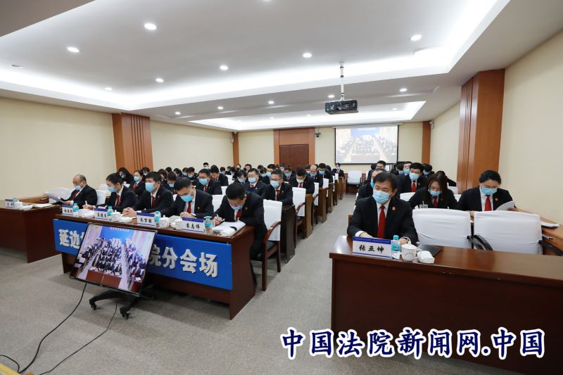 会议采取视频方式进行,中院领导班子成员及全体干警在主会场参加会议,各基层法院领导班子成员及全体干警在各分会场参加会议。