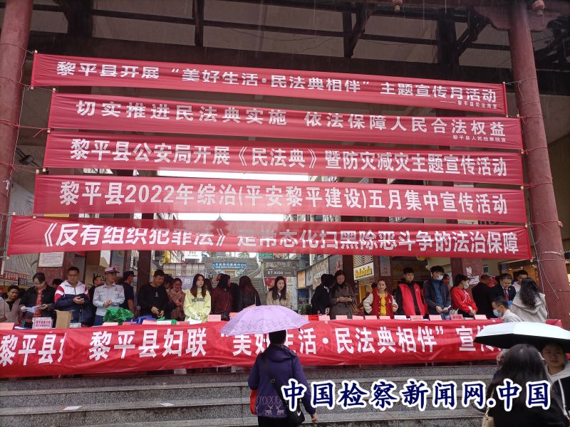 检察讯(石咏宇)5月12日,黎平县人民检察院联合县公安局、县法院等单位开展“民法典宣传月集中宣传一条街活动”。在活动现场,检察干警通过悬挂横幅、发放民法典宣传手册及纪念品、设置民法典宣传讲台等方式向群众宣传民法典。